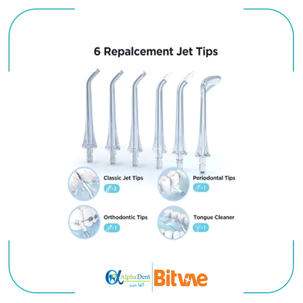 - نازلهای متنوع (معمولاً ۴-۶ عدد): استاندارد، پریودنتال، ارتودنسی، تمیزکننده زبان و غیره – مناسب کل خانواده